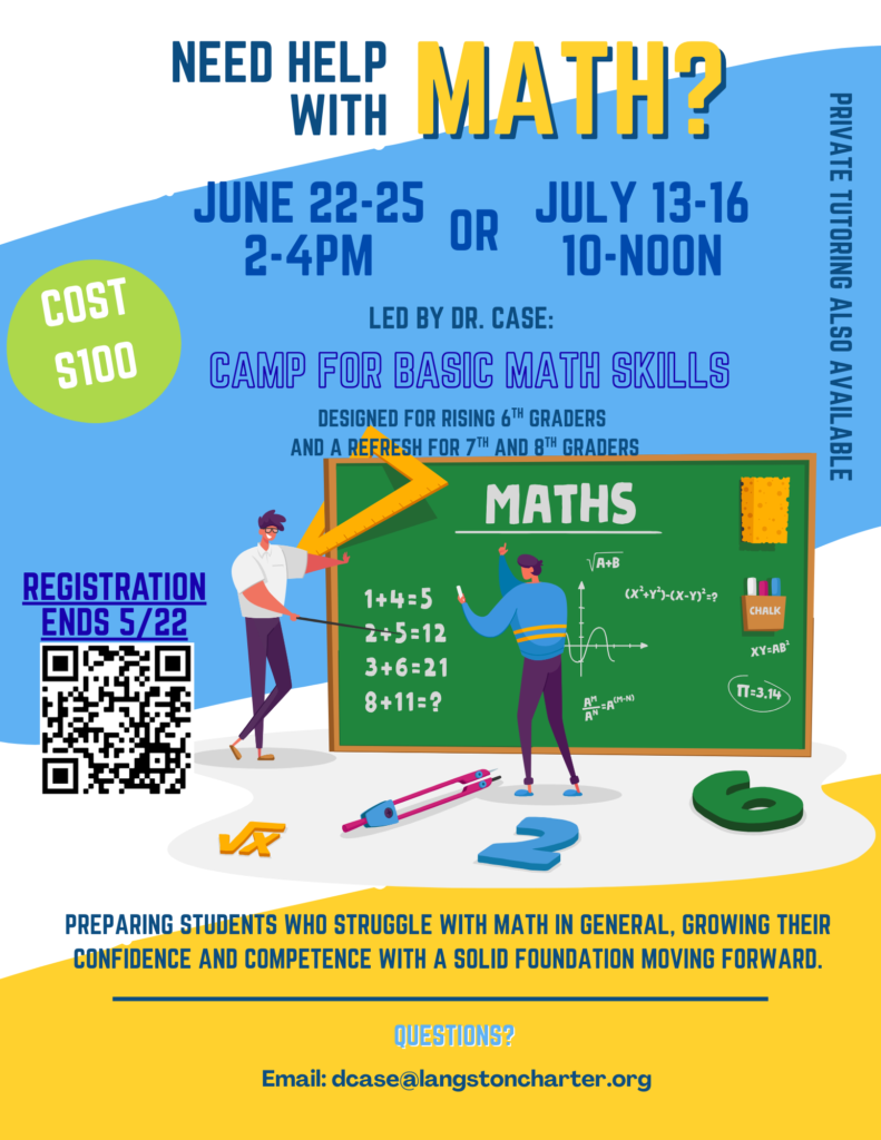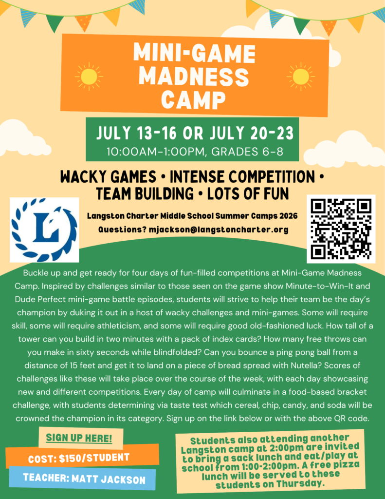 Lots of fun and educational opportunities are available at Langston during the summer! We have several programs to keep minds and bodies active during the summer break. See the information about the summer camps currently offered below.